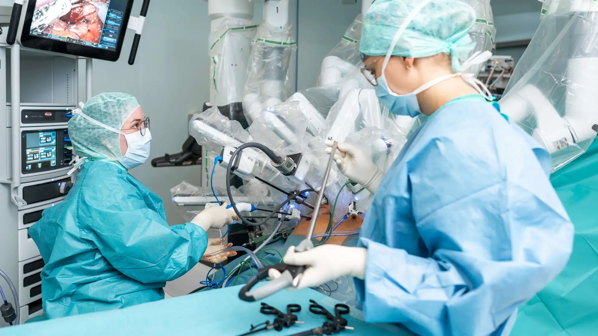 Wir behandeln Erkrankungen des Darmtrakts, von gutartigen und bösartigen Tumoren bis hin zu Entzündungen und funktionellen Störungen. Die meisten Eingriffe führen wir minimalinvasiv durch – mit einem winzigen Schnitt – und nutzen bei geeigneten Fällen die Unterstützung eines OP-Roboters. Mit über 500 Eingriffen pro Jahr gehören diese sogenannten kolorektalen Operationen zu unseren Schwerpunkten.