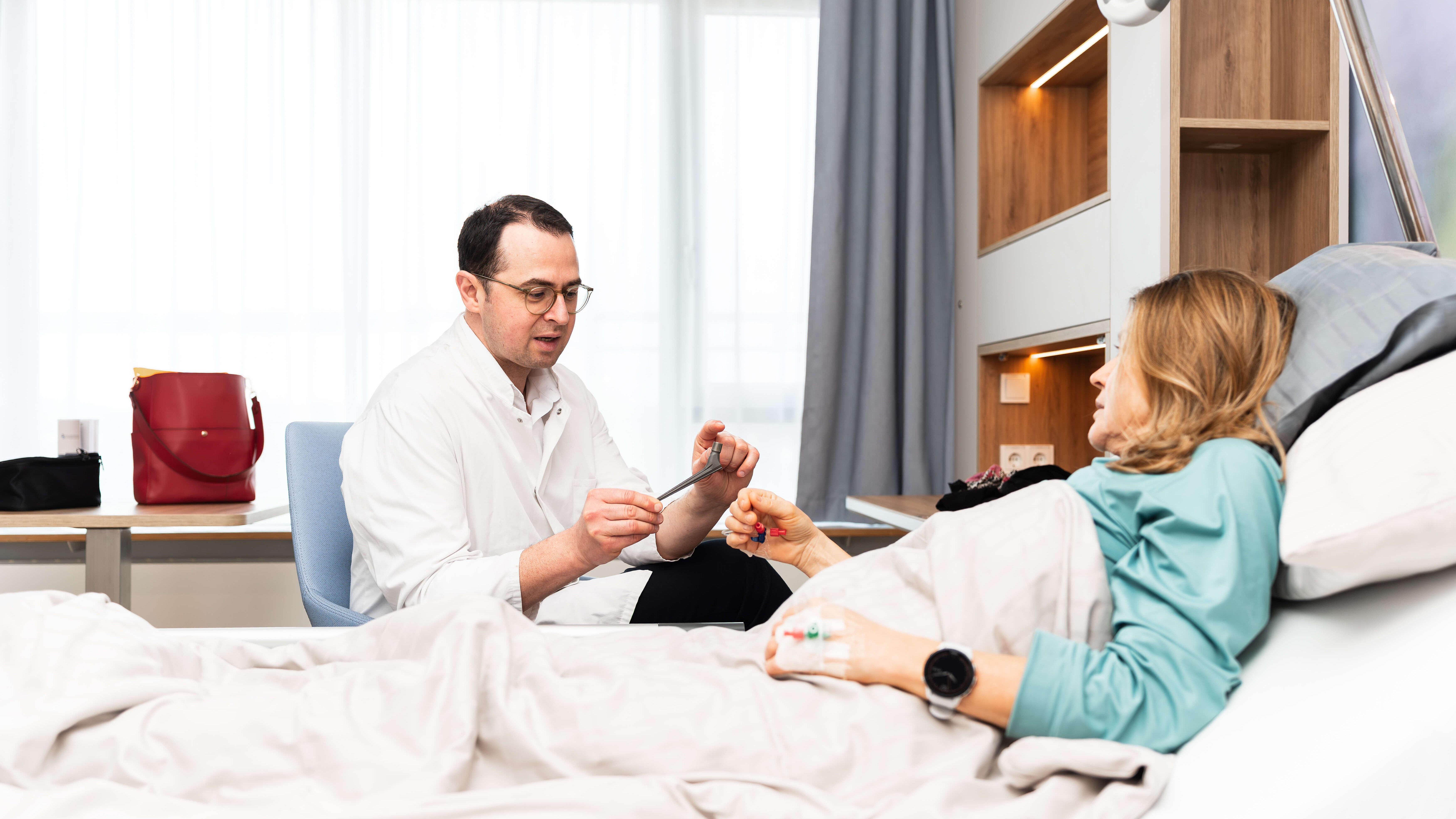 Schon im Jugendalter unterzieht sich die gebürtige Fränkin daher einer Operation zur Korrektur der Fehlstellung – einer sogenannten femoralen und acetabulären Umstellungsosteotomie. Dabei werden Knochen am Becken und am Oberschenkel durchtrennt und neu ausgerichtet. Anschließend stabilisiert ein Gipsverband mit Querstab die notwendige Innenrotation des Gelenks.