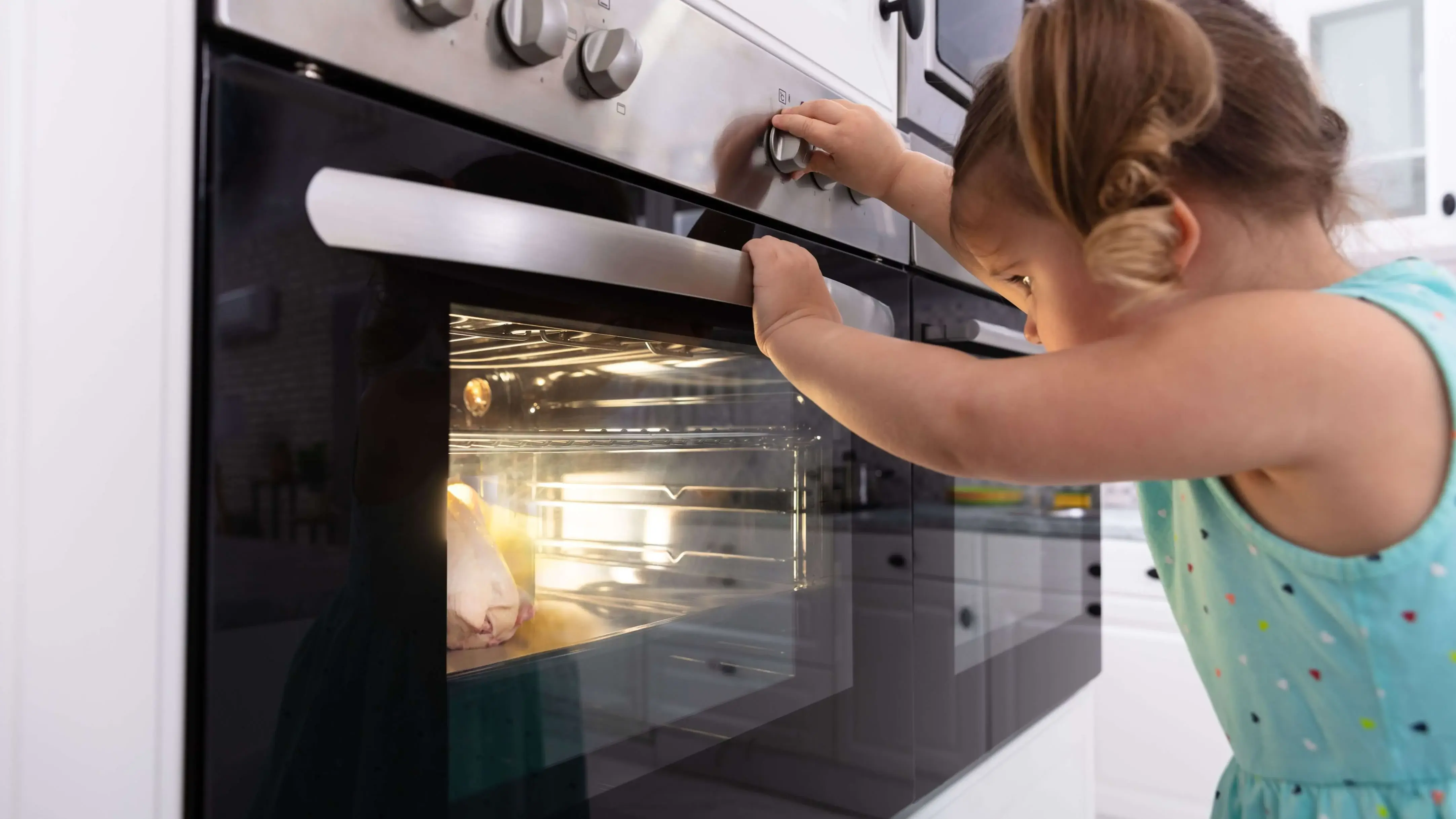 Bild: Gerade im Haushalt, insbesondere in der Küche, gibt es zahlreiche Gefahrenquellen für Verbrennungen bei Kindern.