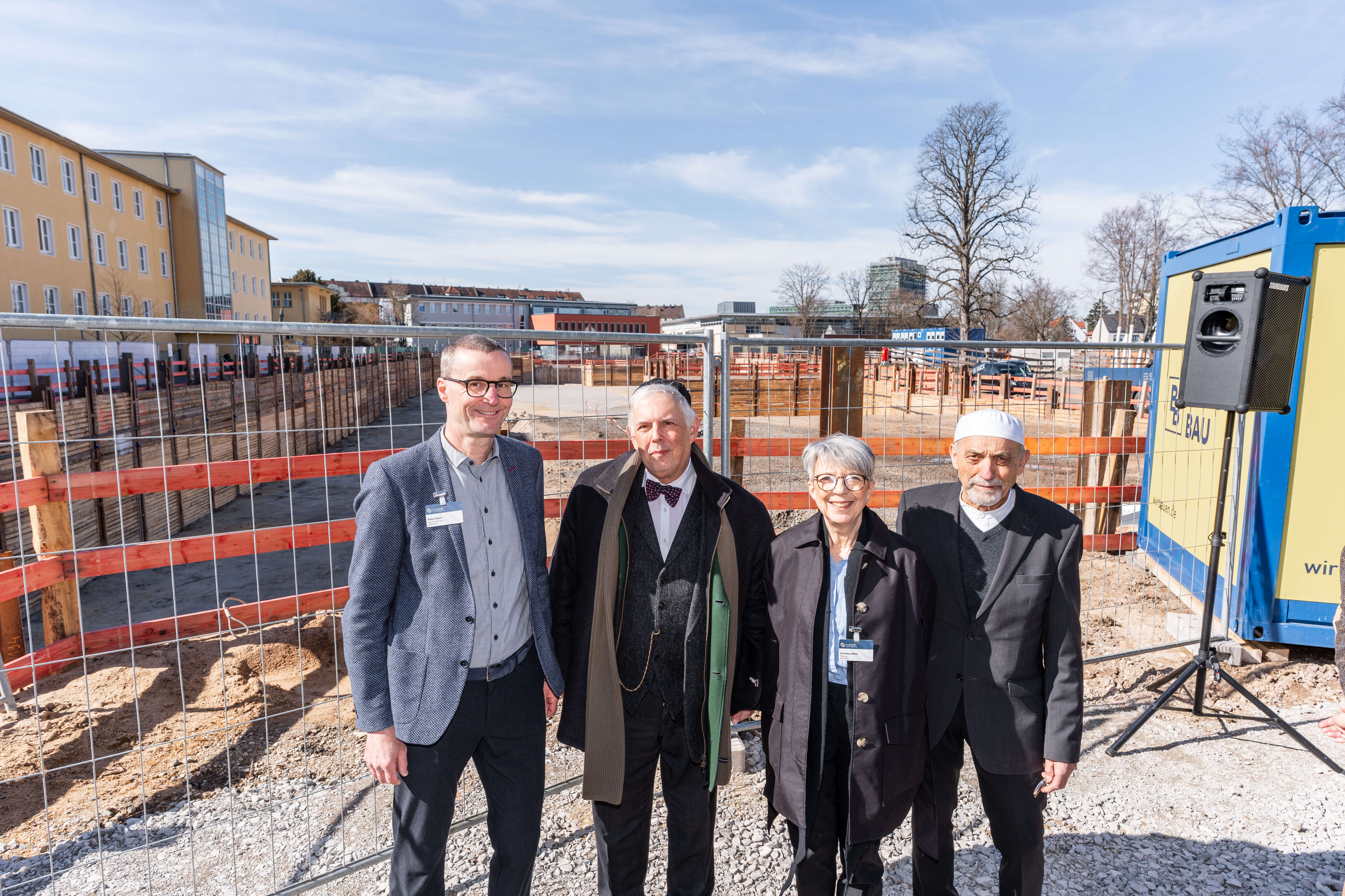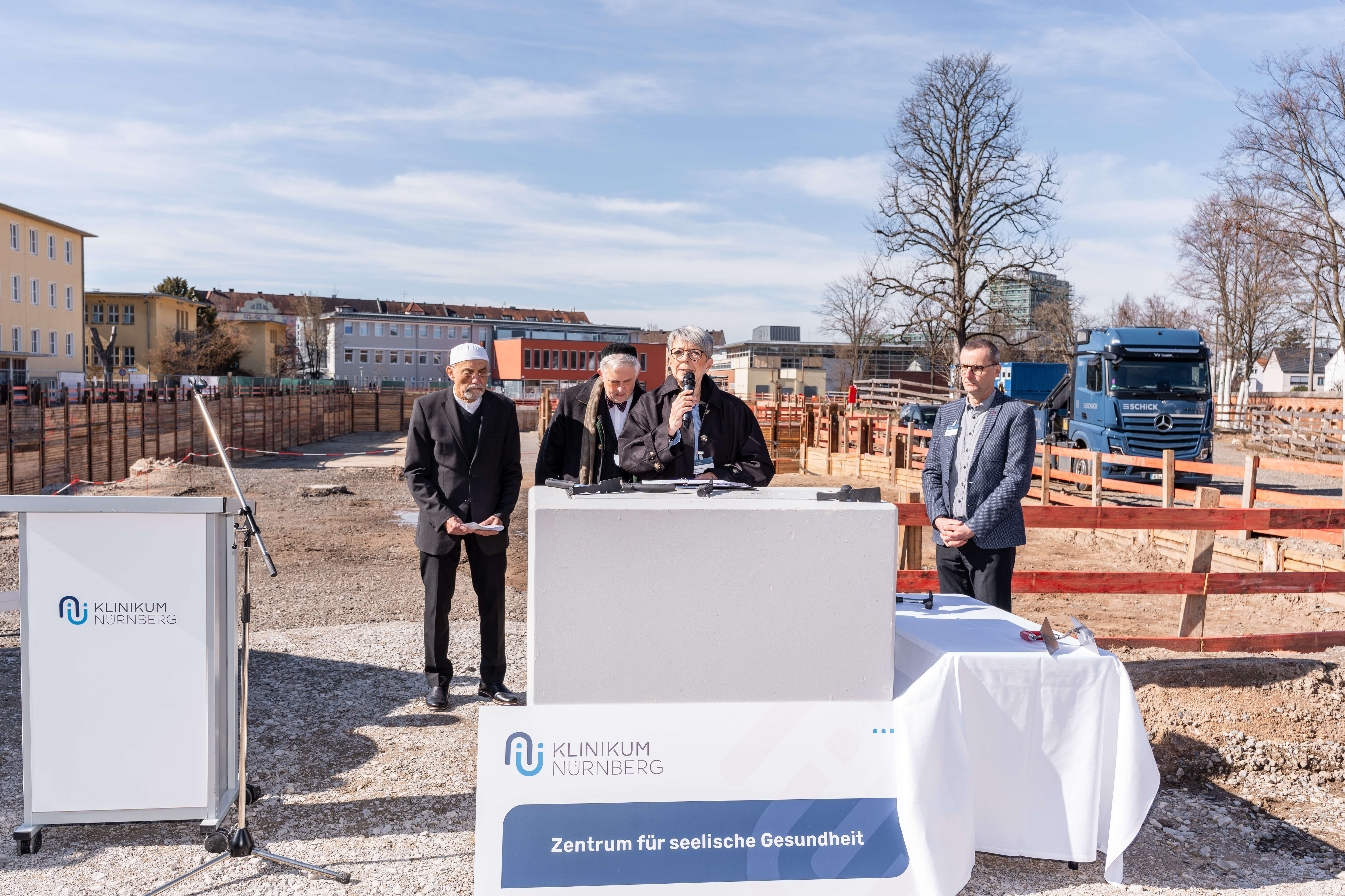 Mit einem interreligiösen Gebet übernahm die Seelsorge des Klinikums gemeinsam mit zwei Gästen - Rabbiner Steven Langnas von der Israelitischen Kultusgemeinde Nürnberg und Süleyman W. Bahn von der islamischen Mevlana Stiftung - die Segnung der Baustelle und des Neubaus.