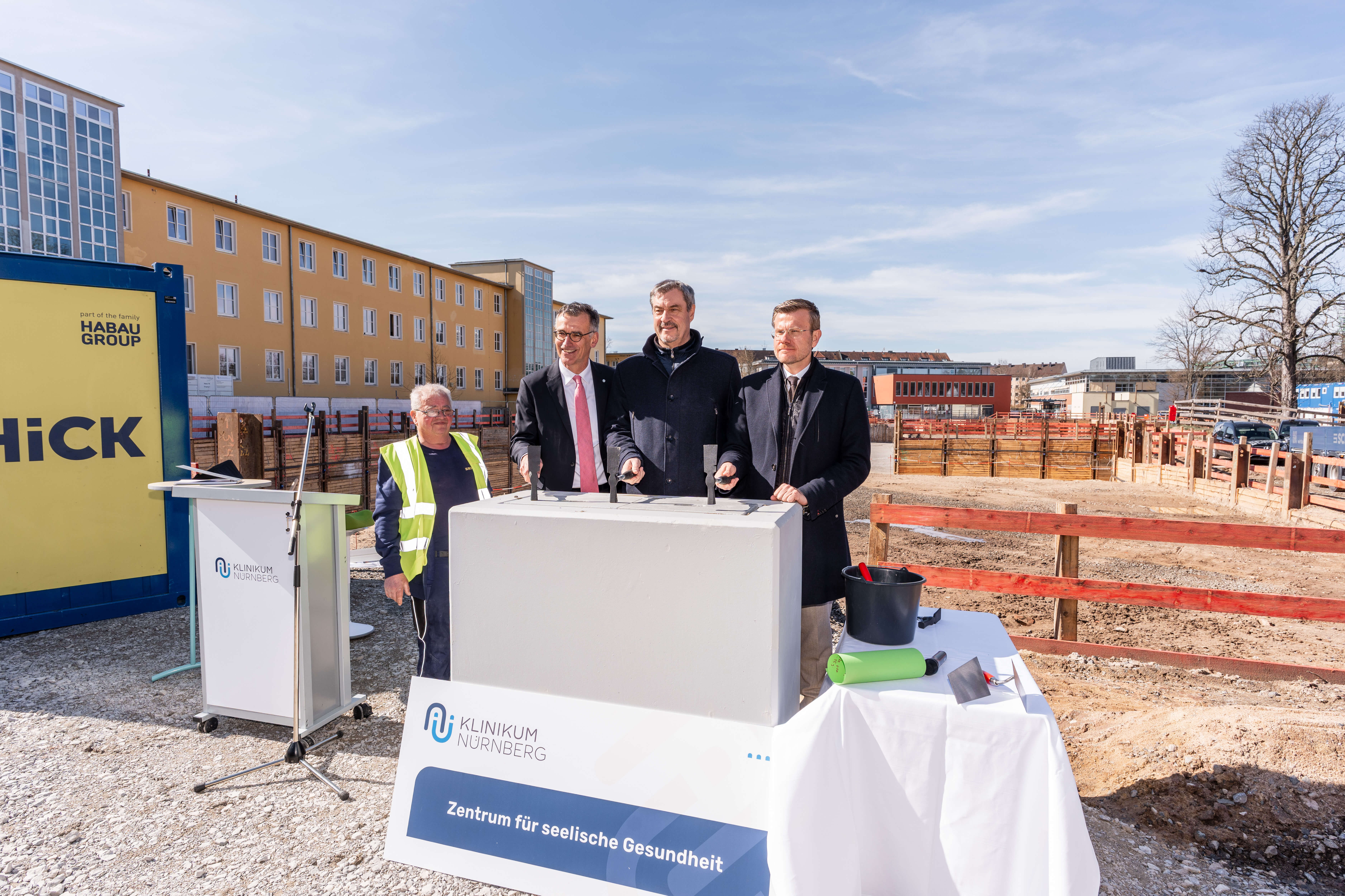 Ministerpräsident Dr. Markus Söder betonte in seinem Grußwort die Bedeutung des Zentrums für seelische Gesundheit: „Die Gesundheit der Seele bekommt hier ein neues Zuhause: Mit rund 190 Betten, 110 tagesklinischen Plätzen, mit 42 Gruppentherapieräumen und 71 Einzeltherapieräumen entsteht auf 1.250 m² Therapiefläche Raum für Behandlung und Gesundung – kompetent, wohnortnah und bestens vernetzt. Der Freistaat tätigt damit die größte Investition in Bayern für einen Neubau für seelische Gesundheit. Ein großer Tag für das Klinikum Nürnberg – finanziell und strukturell für optimale Arbeitsbedingungen. Davon profitieren vor allem die Patientinnen und Patienten mit den besten Chancen auf Heilung. Danke an alle, die täglich alles geben: Ärztinnen und Ärzte, Pflegekräfte und das Management.“