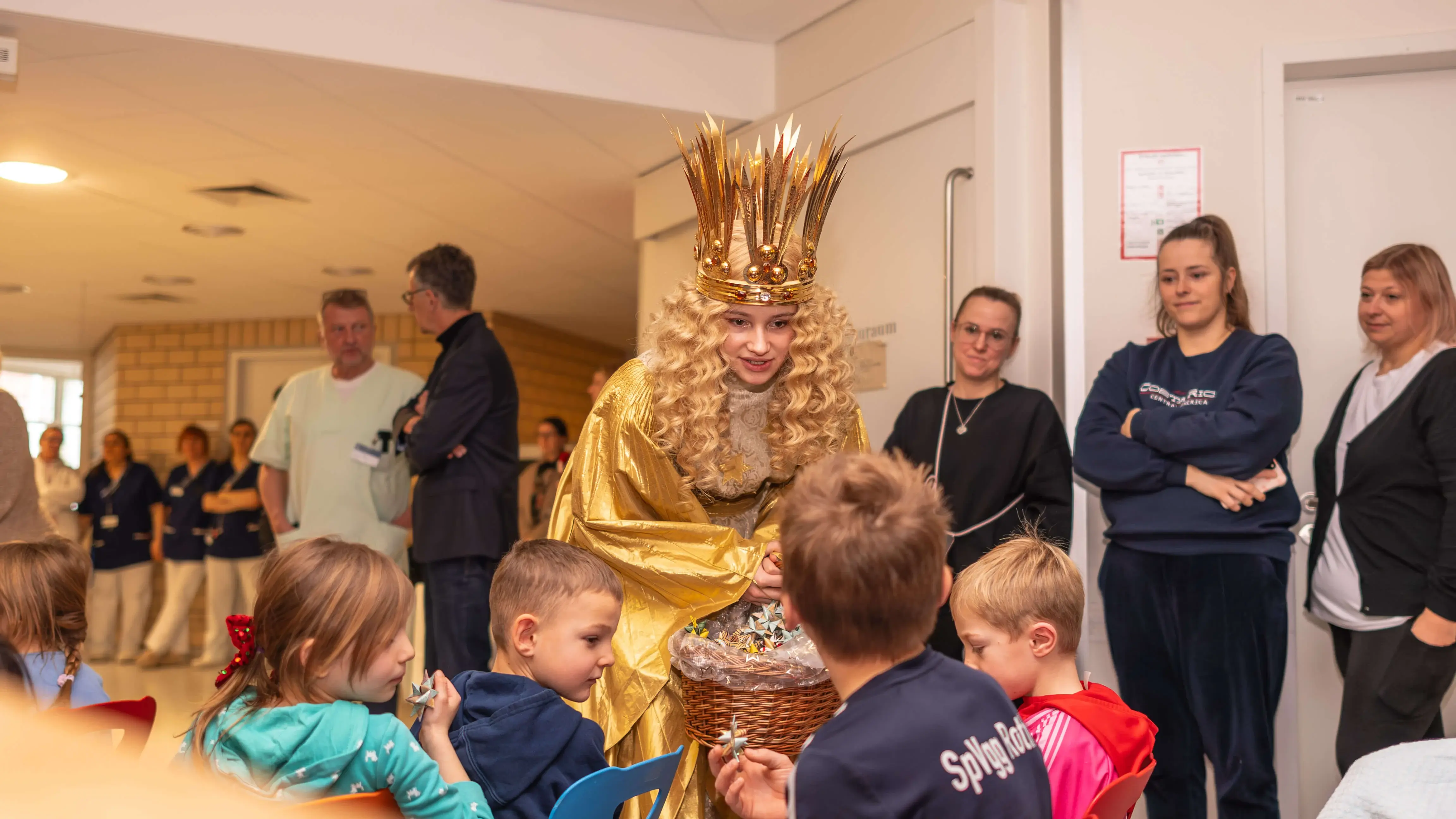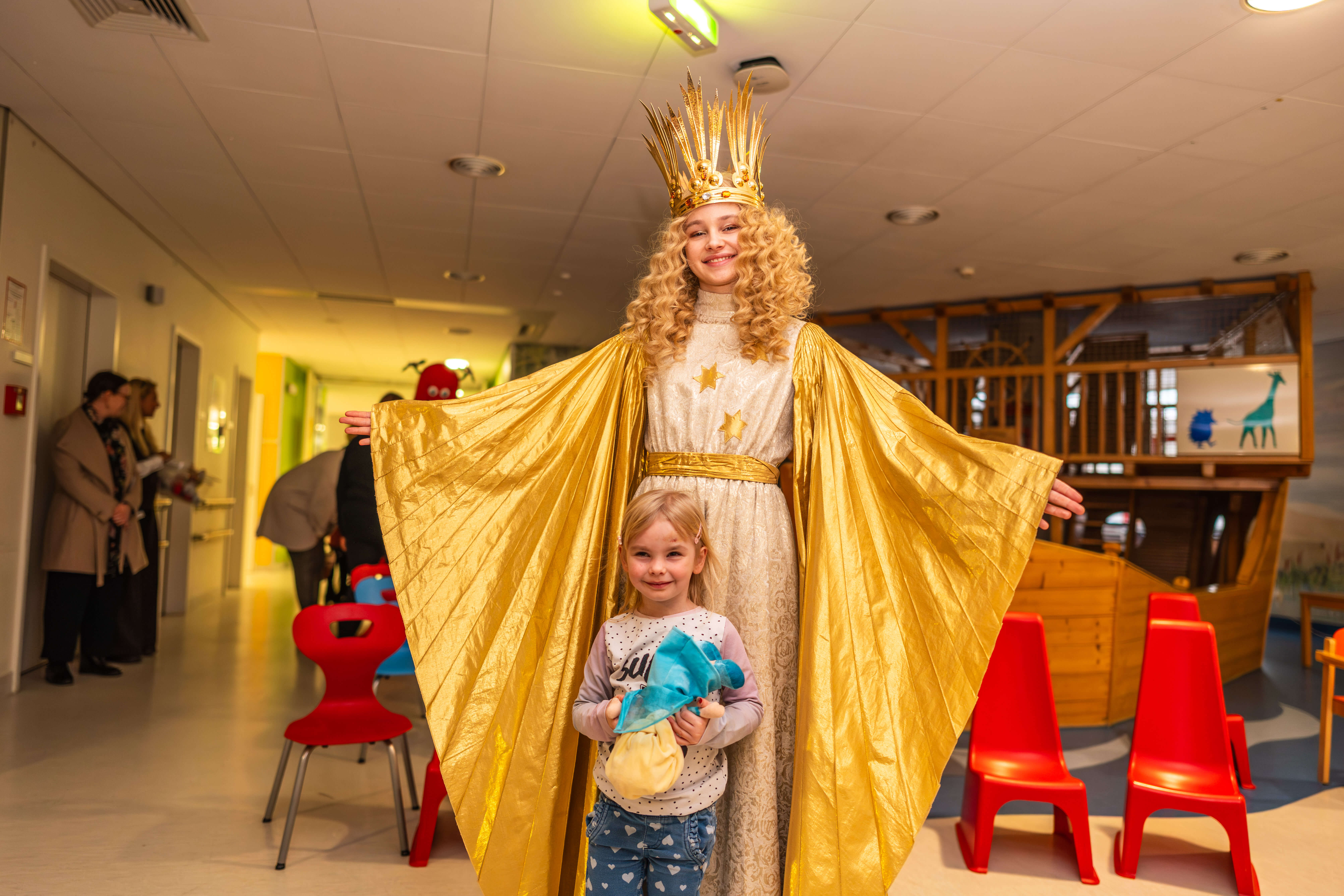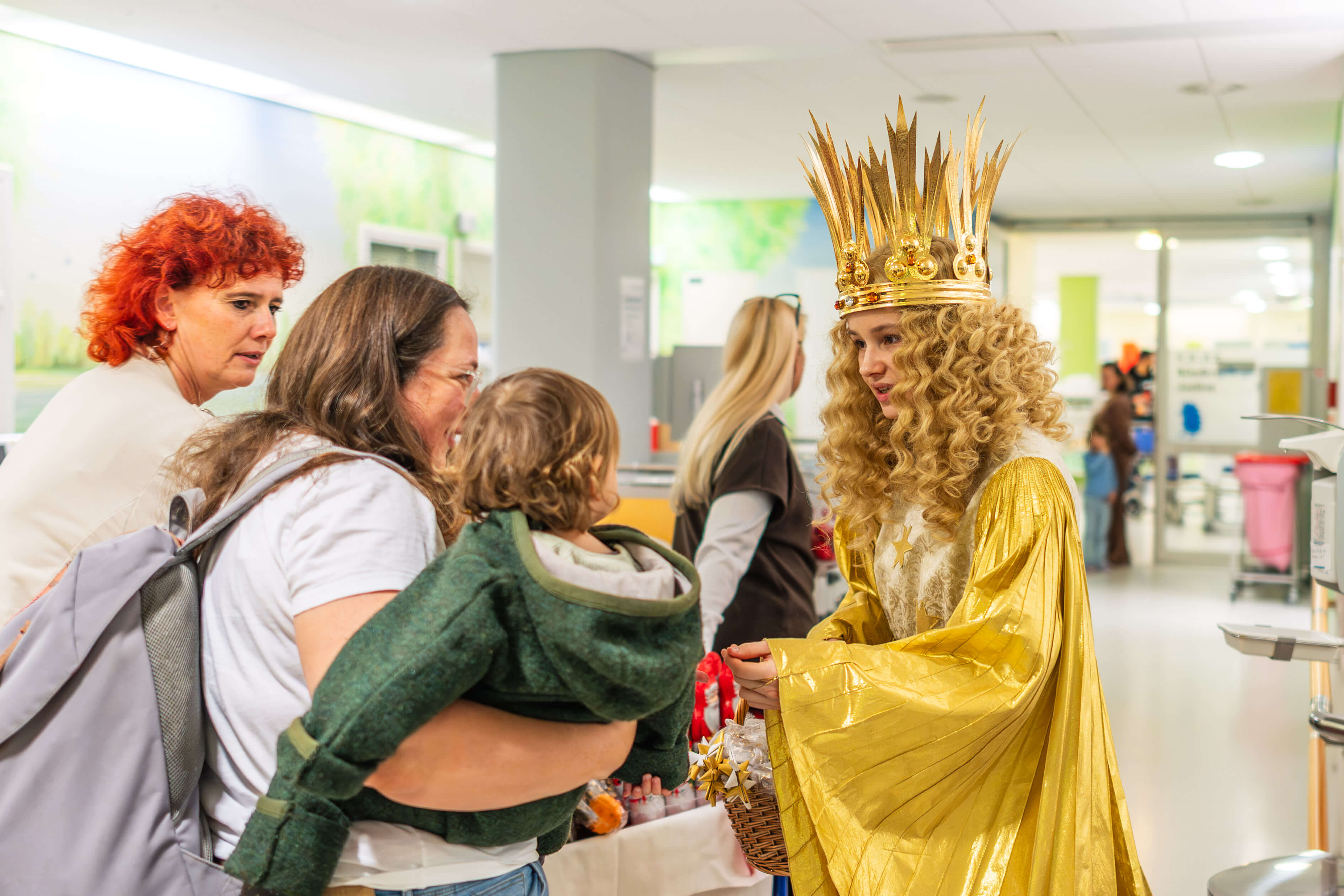 Acht Tage vor Heiligabend kam in der Kinderklinik schon das Christkind. Nora Falk, die dieses Jahr zum ersten Mal in die Rolle des Nürnberger Christkinds schlüpft, stattete den kleinen Patientinnen und Patienten in seinem goldenen Gewand einen Besuch ab, las ihnen eine Geschichte vor und verteilte anschließend kleine Geschenke. Nach dem Vorlesen ging die weihnachtliche Botschafterin durch die Klinik und nahm sich Zeit für persönliche Besuche in den Patientenzimmern.