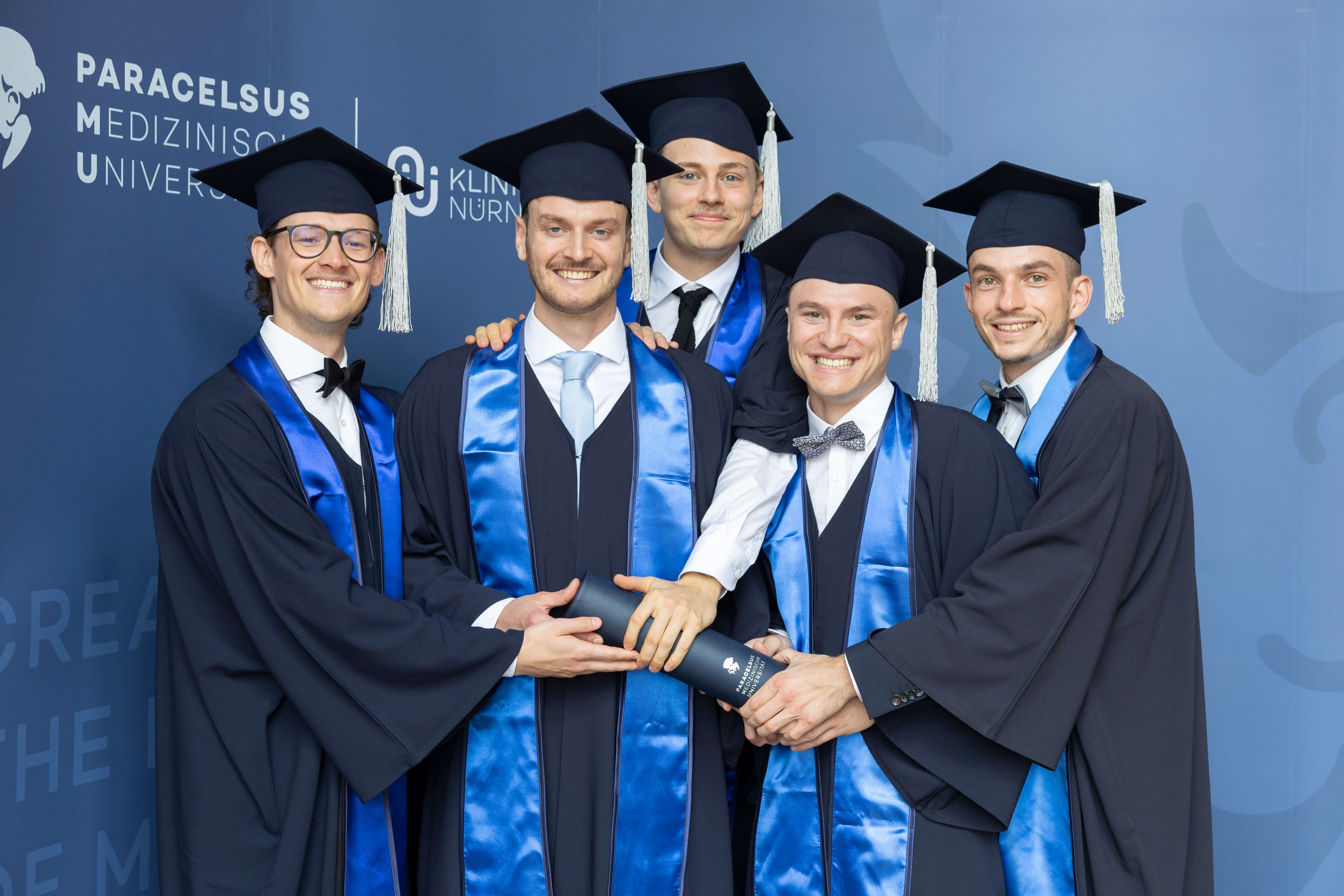 Besonders beglückwünscht wurde Amelie Osswald als 1.000. Absolventin in Humanmedizin an der Paracelsus Medizinischen Privatuniversität. Zusammengenommen haben die beiden Standorte Salzburg und Nürnberg seit Anbeginn aktuell 1.076 Medizin-Absolventinnen und Absolventen hervorgebracht – dem Alphabet nach riss Amelie Osswald bei dieser Graduierungsfeier die 1.000er-Marke. Aus formalen Gründen flossen in die Zählung 41 Absolventen ihres Jahrgangs ein.