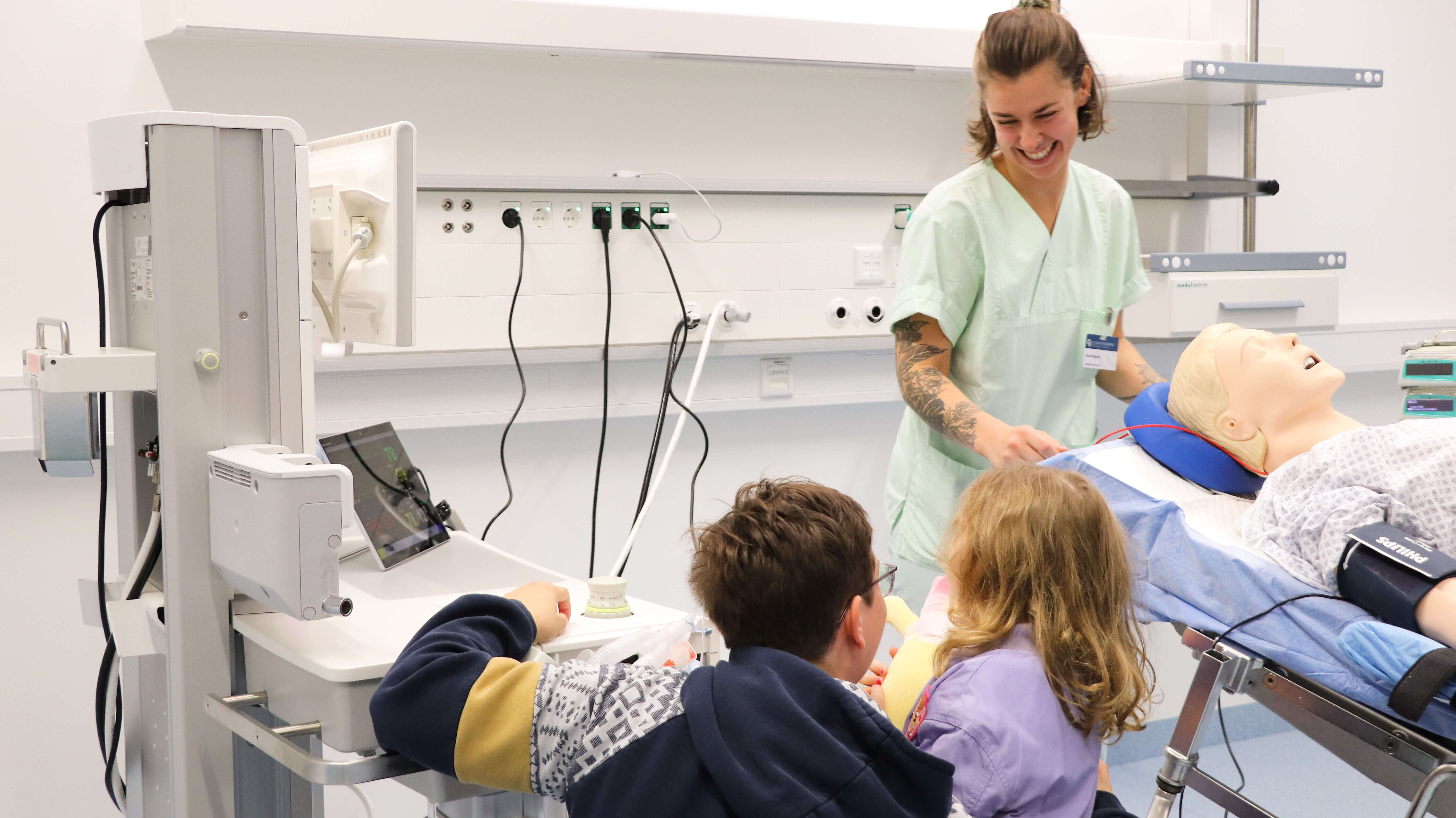 Das bewusst kompakte Programm bot ein Dutzend Stationen in drei Gebäuden. Im Haus 47 feierte das bald in Betrieb gehende Simulationszentrum Vorpremiere. Noch läuft hier der Innenausbau - bei Kurzführungen und Notfalltrainings der Klinik für Anästhesiologie konnte man schon mal einen Einblick bekommen. Die Kinderkardiologie zog viele Neugierige an, während eine Tür weiter PMU-Studierende in der Teddybär-Klinik mitgebrachte Dinosaurier und Pandabären versorgten. Im Hörsaal beleuchtete eine Vortragsreihe populäre Forschungsthemen, und die Gäste konnten Fragen stellen.
